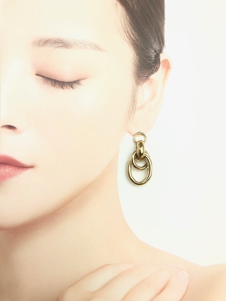 シンプルながらモードな雰囲気もあわせ持つピアスは耳元で存在感を放ちます