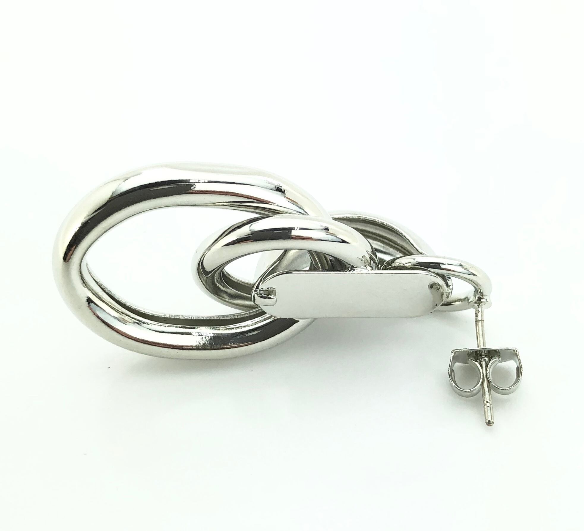 サイズの違うメタルのリングが重なり合ったピアス