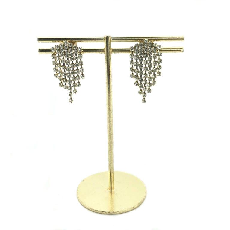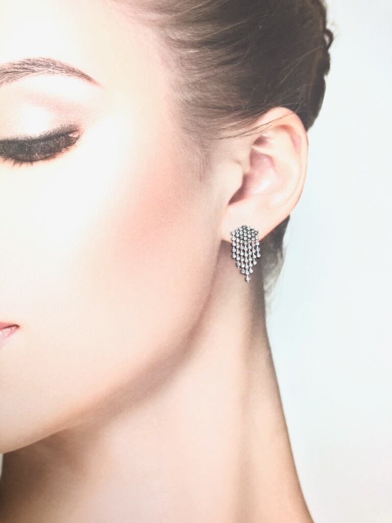 長さの違うラインストーンのレーンを美しいバランスにまとめたフリンジデザインのピアス