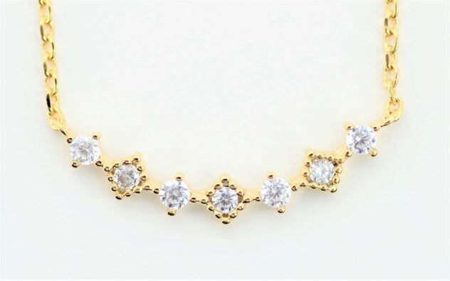 小粒なキュービックジルコニアを中央に華奢なチェーンでデザインしたショートネックレス