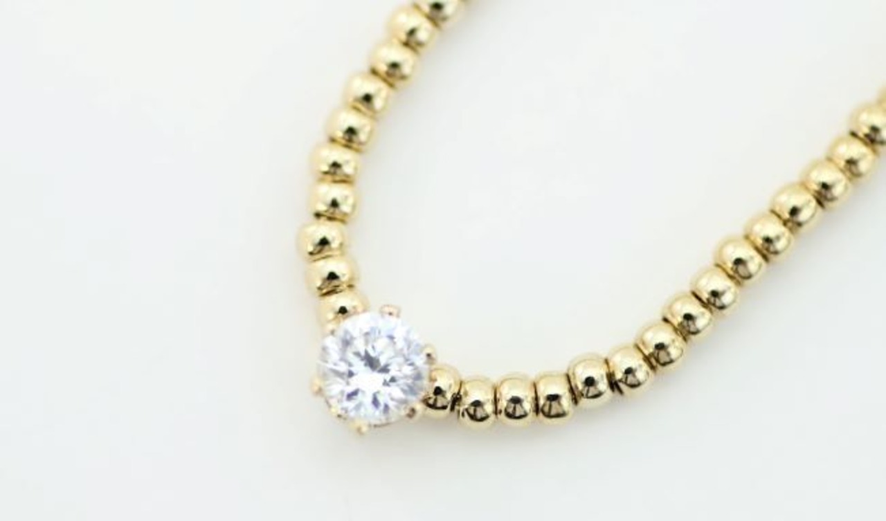 小粒なメタルビーズにワンポイントキュービックがデザインされたショートネックレス