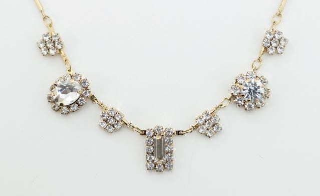 小振りで繊細な異なるビジューモチーフを下げたショートネックレス