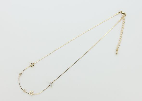華奢なチェーンに小粒で繊細なパーツがデザインされたショートネックレス