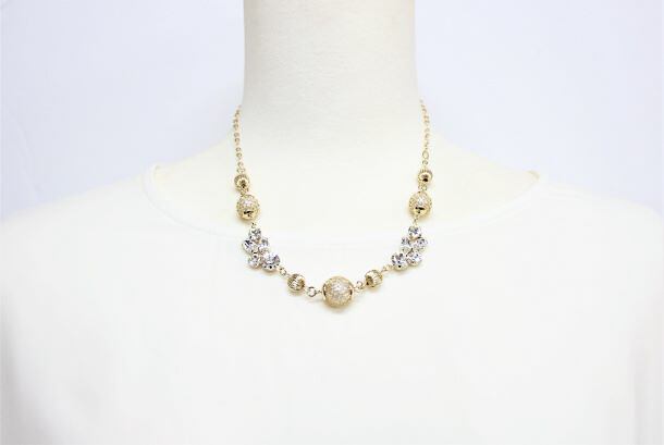 ビジューとメッシュパールが華やかでエレガントなネックレス