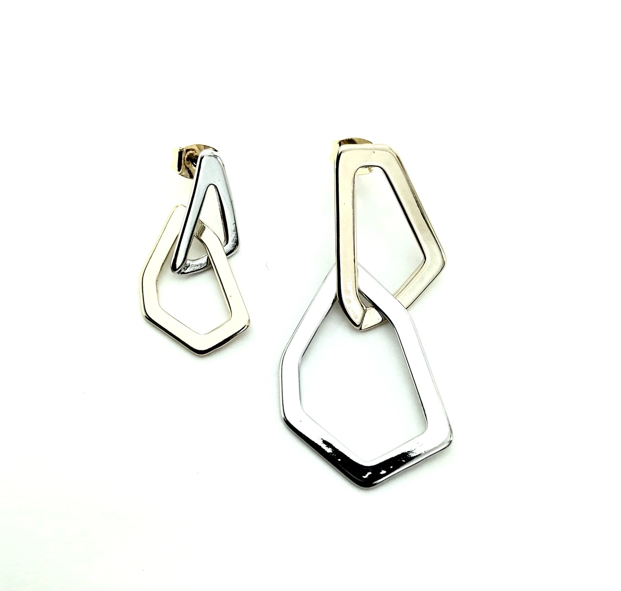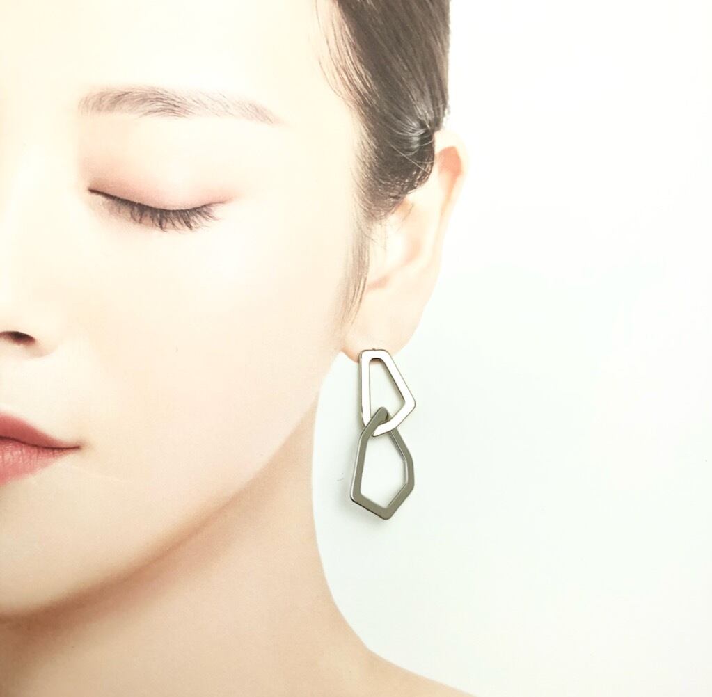 変形メタルプレートを組み合わせたコンビカラーピアス。