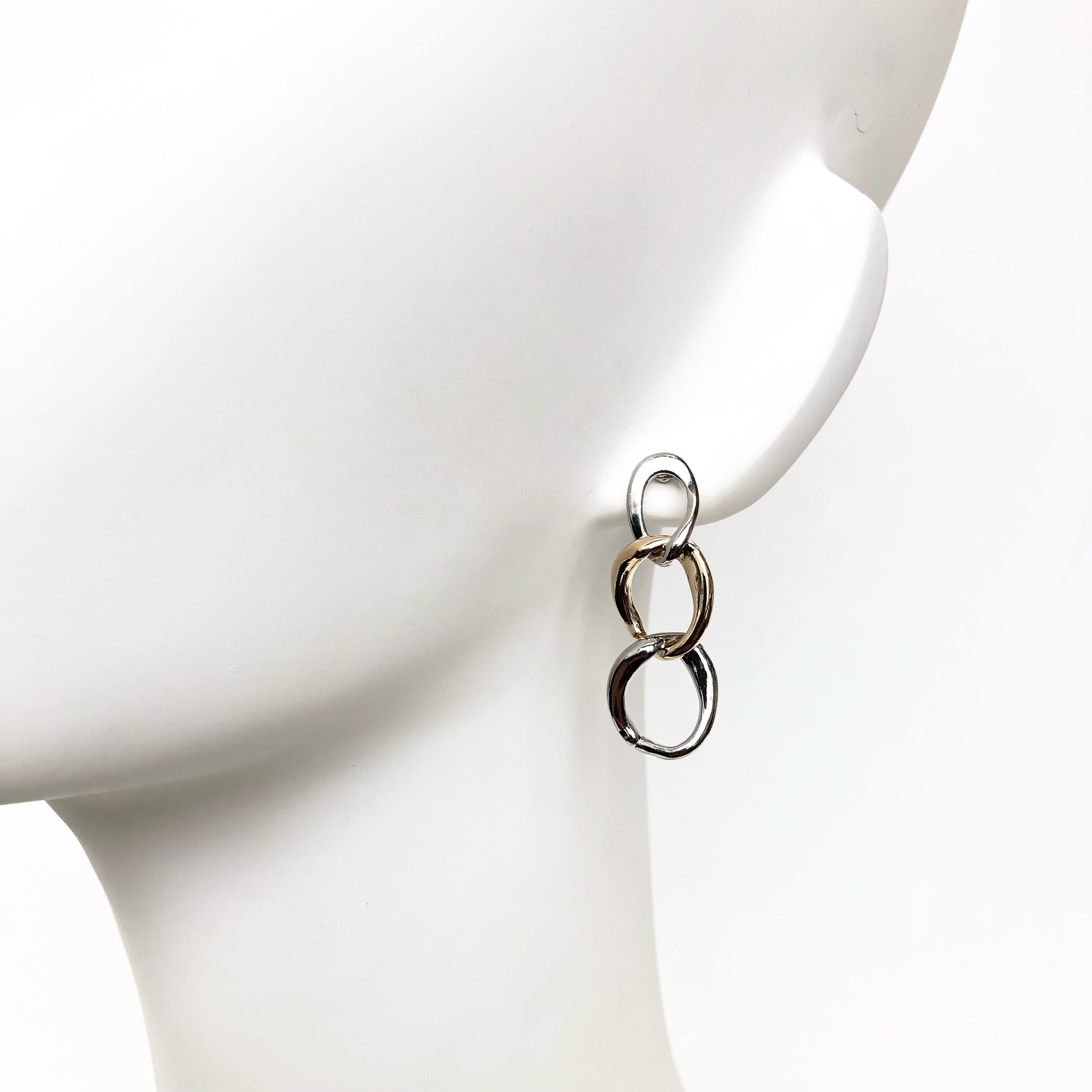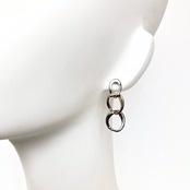 サイズ違いのオーバルパーツをバイカラーにデザインしたドロップピアス。